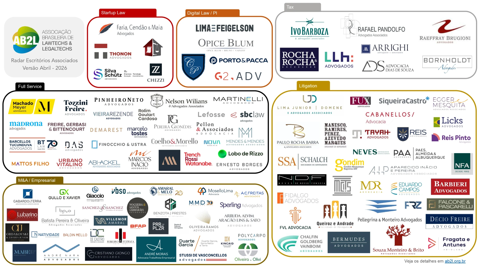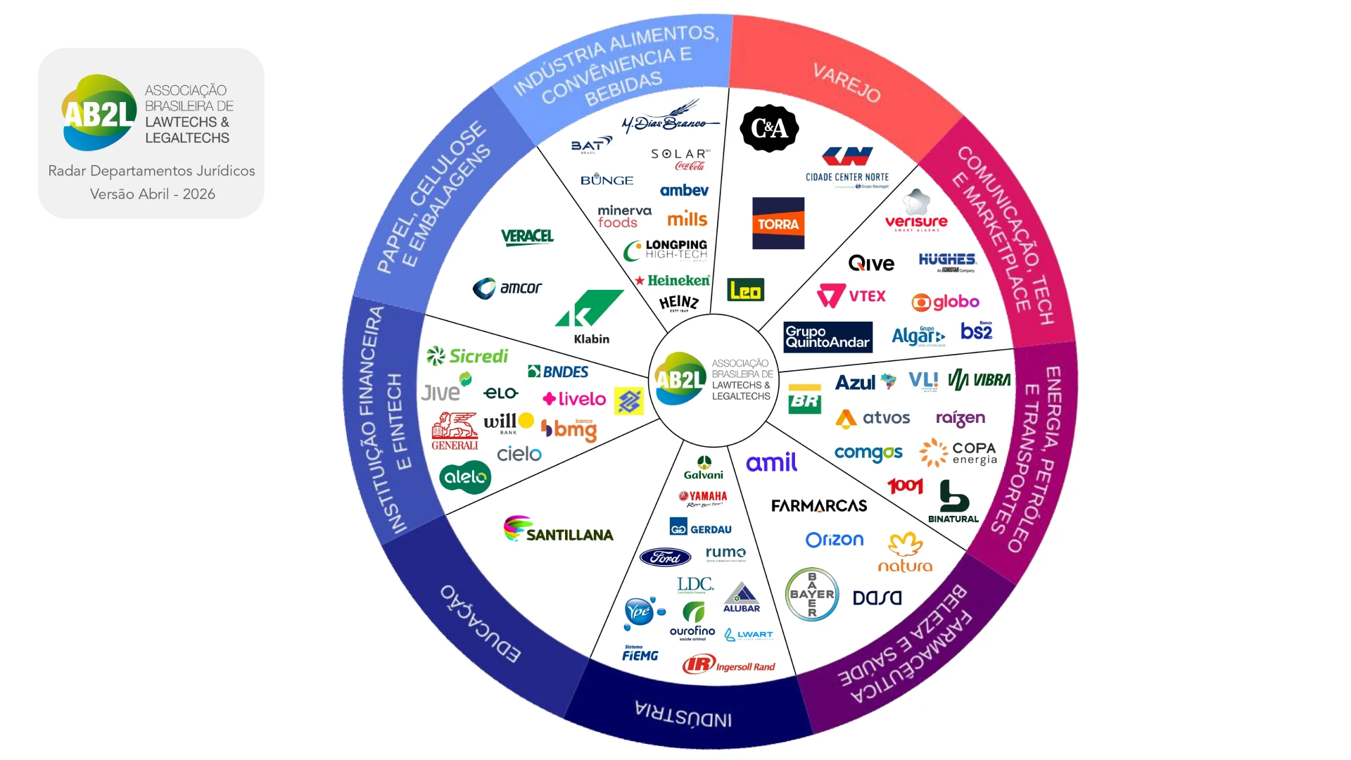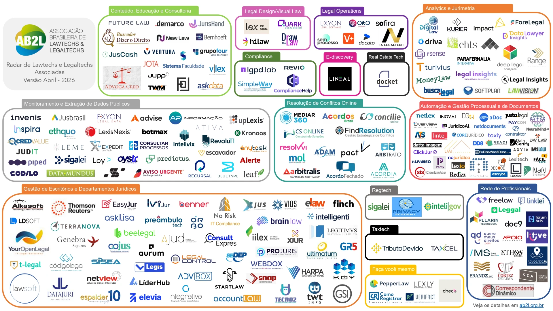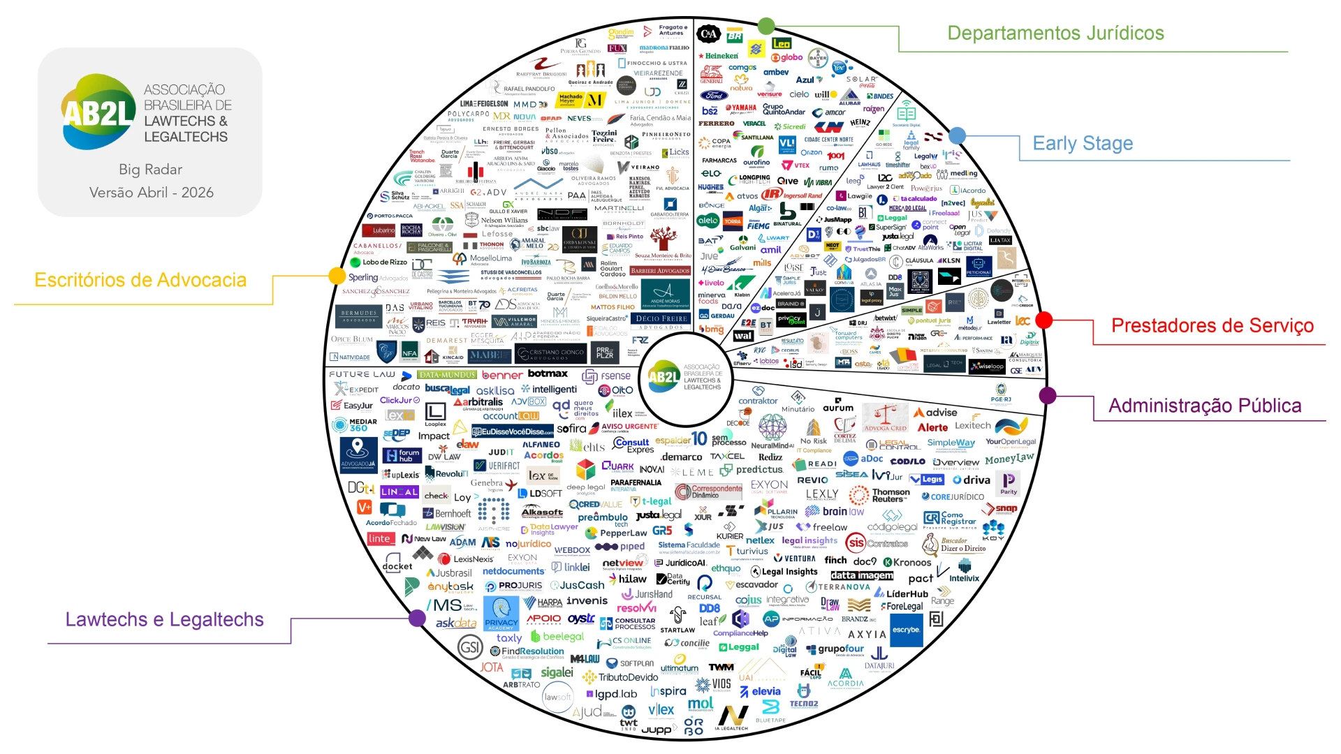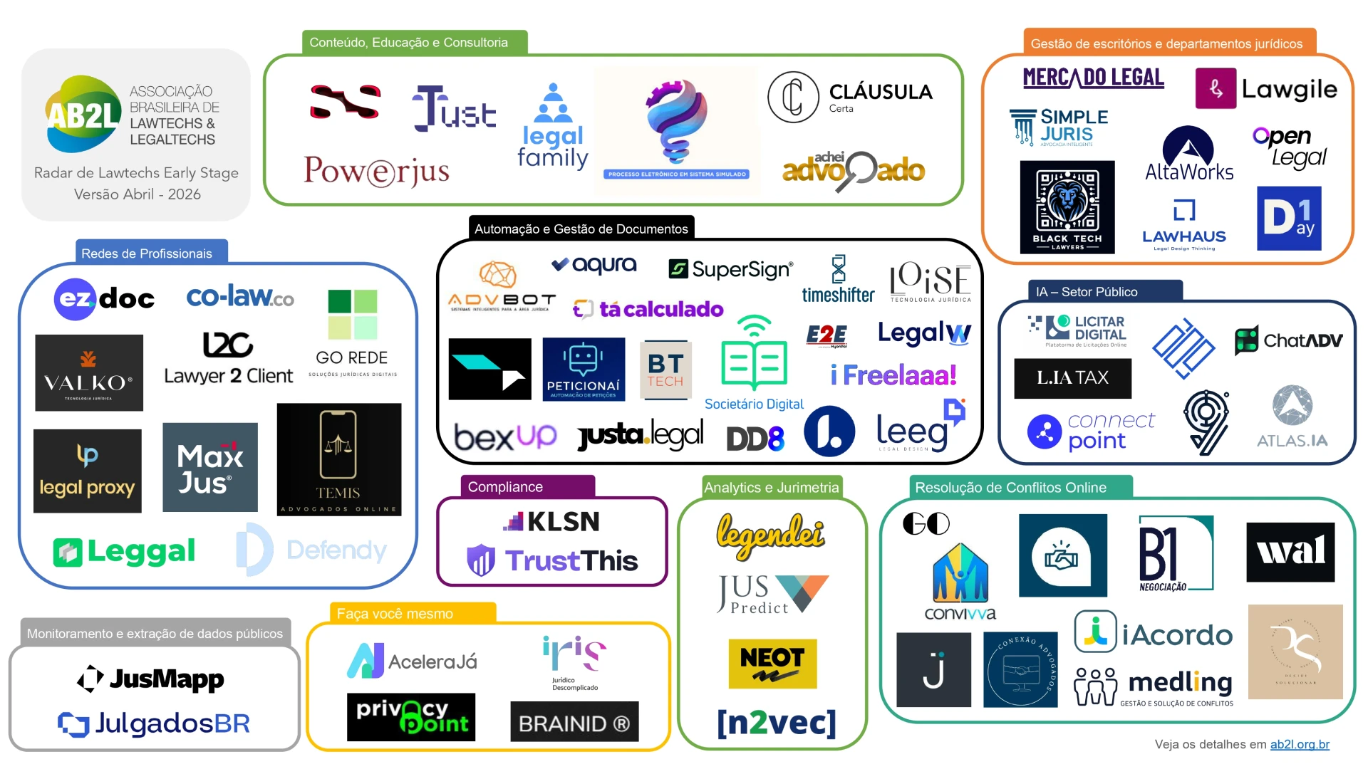 Cada radar representa uma comunidade dentro da AB2L, com seus principais atores e iniciativas.
