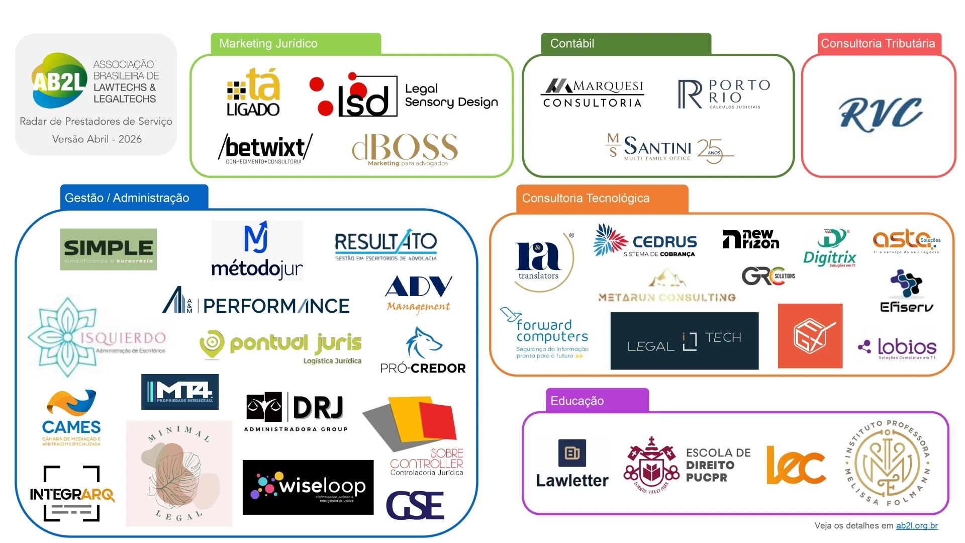 Empresas e profissionais que oferecem soluções complementares ao setor jurídico — como consultorias, comunicação, tecnologia, capacitação e gestão.