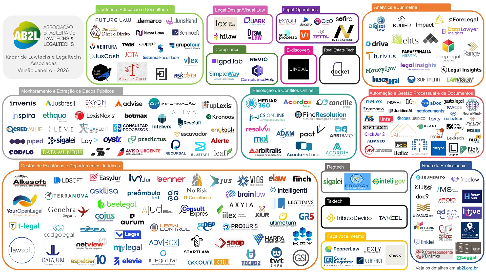 Cada radar representa uma comunidade dentro da AB2L, com seus principais atores e iniciativas.